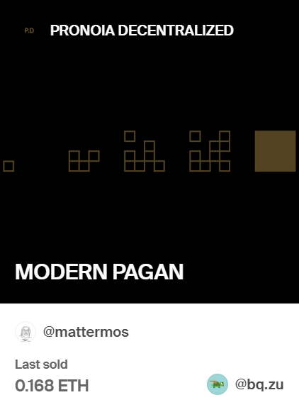 1/1 auctionable NFT for Matter Mos’s “PRONOIA 2.0” – released in June 2022. each NFT represents 20% of streaming royalties generated from Digital Service Providers. Token Holders will be given exclusive access to dedicated discord channel for transparencies and special accesses for everything Matter Mos.